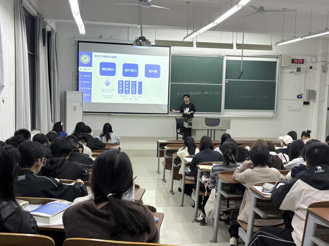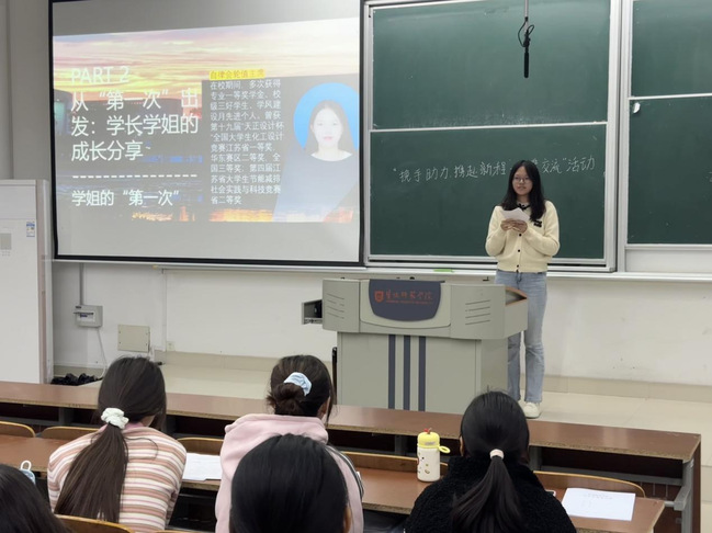 谢煜明学长以自身“初次”学生工作经历为切入点,详细介绍大学生活中涉及的学生工作、竞赛、科研、师范生发展等领域的内容与经验。他分享了自己“初次”参与班级工作、“初次”加入自律会的成长轨迹,梳理了学院可参与的各类竞赛类别;回顾了“初次”进入导师实验室的探索流程,给出师范生“初次”面对考编考研选择时的发展建议。并结合这些“初次”经历,强调目标、选择与坚持的重要性,鼓励新生勇于尝试,在“初次”的挑战与探索中提升自我、追求兴趣,进而收获成功与成长。