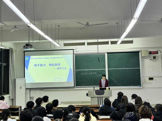 2025年10月19日,为助力新生精准破解入学以来的疑惑,明晰大学学习生活方向,依托学长学姐的亲身经验搭建高效沟通渠道,增强新生适应校园的信心,营造互助共进的朋辈交流氛围,化学与环境工程学院于公共教学楼D101、D102教室举办“挽手助力,携赴新程——朋辈交流”活动。本次活动吸引全体新生积极参与,旨在通过场景化分享的形式,为新生破解学习规划、生活适应等方面的困惑。