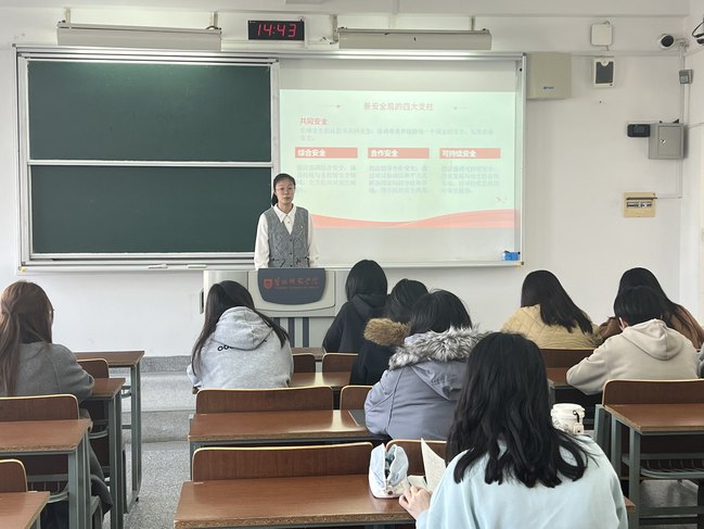 活动伊始,唐茂林着重指出,中华民族共同体的形成与发展是历史必然,号召全体人员进一步巩固民族团结关系、携手共筑民族复兴梦想。在学生党员领学环节,刘菲菲立足自身实际,围绕“新时代青年如何落实全球倡议”畅谈思考,她深入解读新安全观,进一步激发学生党员投身国家建设、共赴共同目标的坚定决心。随后,全体学生党员共同观看《传承红色保密印记︱人民力量》宣传视频,视频深刻阐释,保密工作是依靠人民群众的“人民战争”——从反“围剿”时期的坚壁清野、抗战时期的群众护军,到相关法律明确全民保密义务,历史充分证明,保守秘密的要诀始终深深扎根于人民土壤。