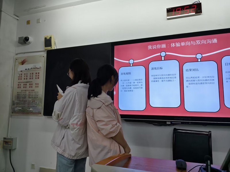 “优点轰炸”环节成为整场活动的温暖高潮。成员依次成为“被轰炸对象”,其余同学轮流说出其具体、真诚的优点,如“我欣赏你在讨论时总能精准捕捉他人想法,让每个人都感受到被倾听”。当被忽视的闪光点被一一看见、被具体的肯定包裹时,成员们的眼神逐渐明亮,自我价值感在团体的积极反馈中不断升温,现场满是对彼此的欣赏与被认可的感动。