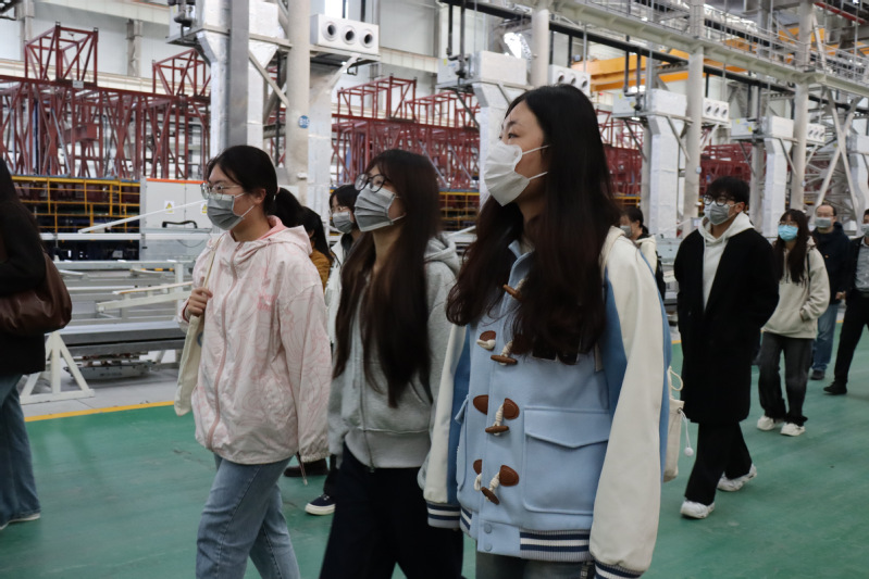 在中车风电叶片工程有限公司,深入生产车间实地考察风电叶片研发、生产及环保处理全流程。企业现场负责人围绕风电叶片材料环保性提升等问题,与师生展开深入交流,对下一步企业为学院学生提供生产实习、毕业设计指导等实践岗位进行了进一步交流,未来企业将研究释放材料研发、环境监测、生产工艺优化等相关岗位需求,为学院毕业生提供优质就业选择。