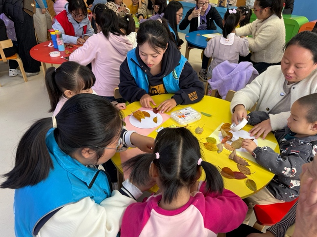 10月26日,一场“沉浸式重阳敬老小课堂”在“智启未来 点亮童心”宣讲团志愿者的带领下热闹开场。志愿者通过“节日猜猜乐”趣味互动,让孩子们轻松猜出重阳节。紧接着,志愿者通过“桓景除妖”的传说、经典诗词解析、登高赏菊佩茱萸的习俗,生动讲述重阳节的由来与意义。活动最后,进入手工制作环节,小朋友们在大学生的指导下,兴致盎然地创作了精美的重阳主题贴画,许多孩子表示要将作品作为节日礼物送给家中长辈。