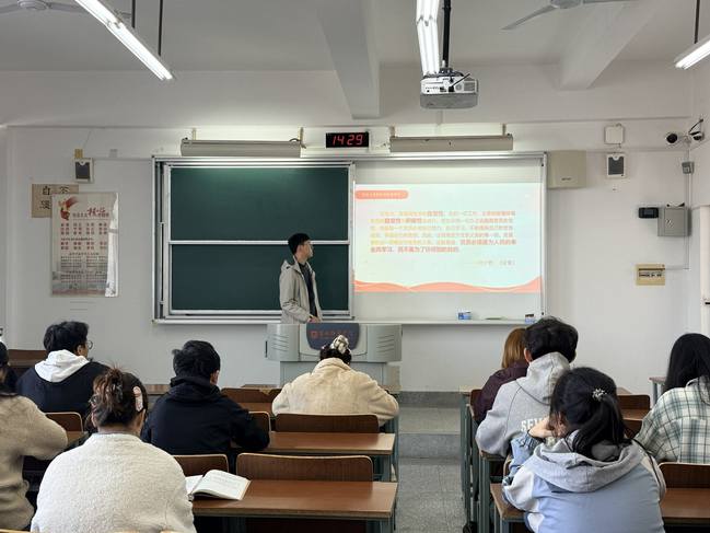 分团委副书记乐达援引刘少奇同志《论党》,着重强调党员自觉性的核心——党员学习的根本出发点是为人民事业奋斗,绝无任何功利目的。他指出,清晰界定并深刻把握党员义务与权利,是锤炼党员素质、提升党员队伍建设质量的关键,是规范党内政治生活、涵养良好政治生态的保障,是确保党的路线方针政策及决策部署落地的必然要求,更是党员践行合格标准、永葆先进本色的基础。其次,他阐明正确行使党员权利首在明确根本目的,党员须以对党的事业高度负责的态度,坚持实事求是、恪守岗位职责,依规依纪依法行权。乐达强调党员权利与义务辩证统一、相辅相成:履行义务是行使权利的前提,切实尽责才能更好享有权利;行使权利是履行义务的保障,合法行权可有效推动义务落地。