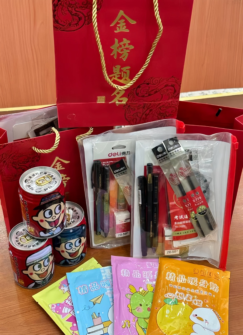 在奔赴梦想的研途上,学院为考研学子准备了考研加油冲刺礼包,“金榜题名”祝福礼袋里不仅装载了连中三元、逢考必过、暖宝蓄志、好运旺旺、一举‘糕’中,还承载着学院老师们一份份温暖的祝福,一个个美好的期望。