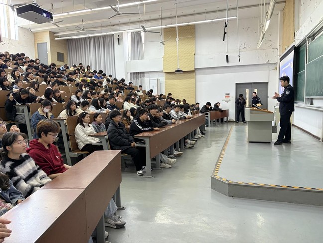 近日,化学与环境工程学院在公共教学楼C202教室举办防范电信网络诈骗专题讲座,特邀盐城市公安局盐城经济技术开发区分局新城派出所朱警官主讲,200余名学生参与学习,共同筑牢校园安全防线。