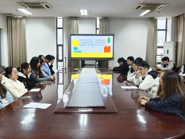 近日,化学与环境工程学院在生化楼401召开“小楼层大作为,一站式共成长”学风建设月启动暨楼层长工作推进会。学院分管宿舍工作老师、各楼栋楼长、层长及学生代表共同参会。