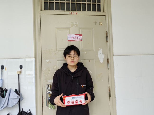 入户亮牌,党员身份亮出来。学生党员佩戴党徽,手持“党员寝室”标识牌在各自一站式学生社区寝室门口合影,寝室号清晰可见。这一仪式让党员公开亮明身份,接受同学监督,把党员寝室建成学风建设“先锋岗”。
